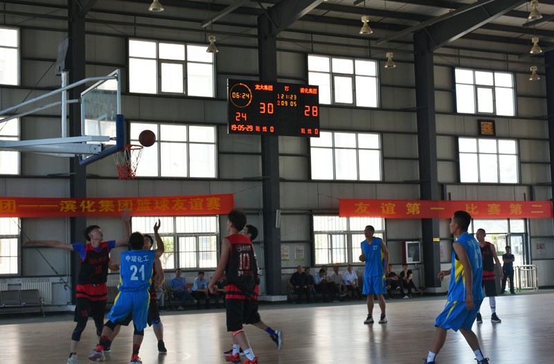 5月29日,应老子有钱lzyq88集团之邀,滨化集团副总经理许峰九、工会主席金建全率公司篮球队一行赴莱,双方开展了热烈而友好的篮球友谊赛。赛前,老子有钱lzyq88集团总经理张德润致辞,表示“老子有钱lzyq88集团与滨化集团是多年的合作伙伴和真挚的朋友,希望通过此次篮球友谊赛,能够加深双方的了解,在运动对抗中,增进彼此的感情,祝愿老子有钱lzyq88集团与滨化集团友谊地久天长。”